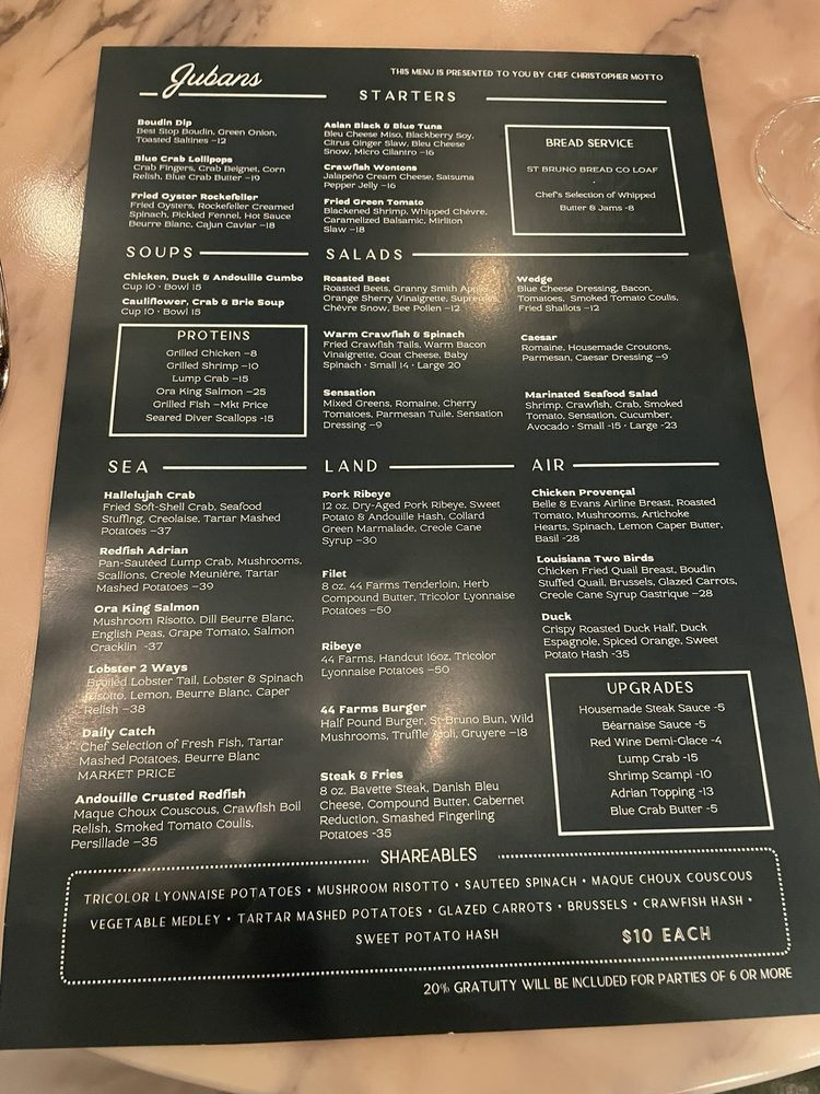 Welcome to the exquisite world of Juban's, a classy and upscale venue in Baton Rouge, Louisiana, offering a delightful blend of Cajun/Creole cuisine and a wide array of amenities. From the mouth-watering Crab Deviled Eggs to the luxurious Hallelujah Crab and the flavorful Lamb Sirloin, Juban's menu boasts a variety of delectable dishes that will tantalize your taste buds. The ambiance at Juban's is cozy and elegant, with attentive waitstaff providing impeccable service. Customers rave about the romantic atmosphere, flavorful food, and attentive service, making Juban's a must-visit destination for a formal sit-down dinner or a casual night out with friends. Don't miss out on the opportunity to experience the culinary delights and warm hospitality that Juban's has to offer.